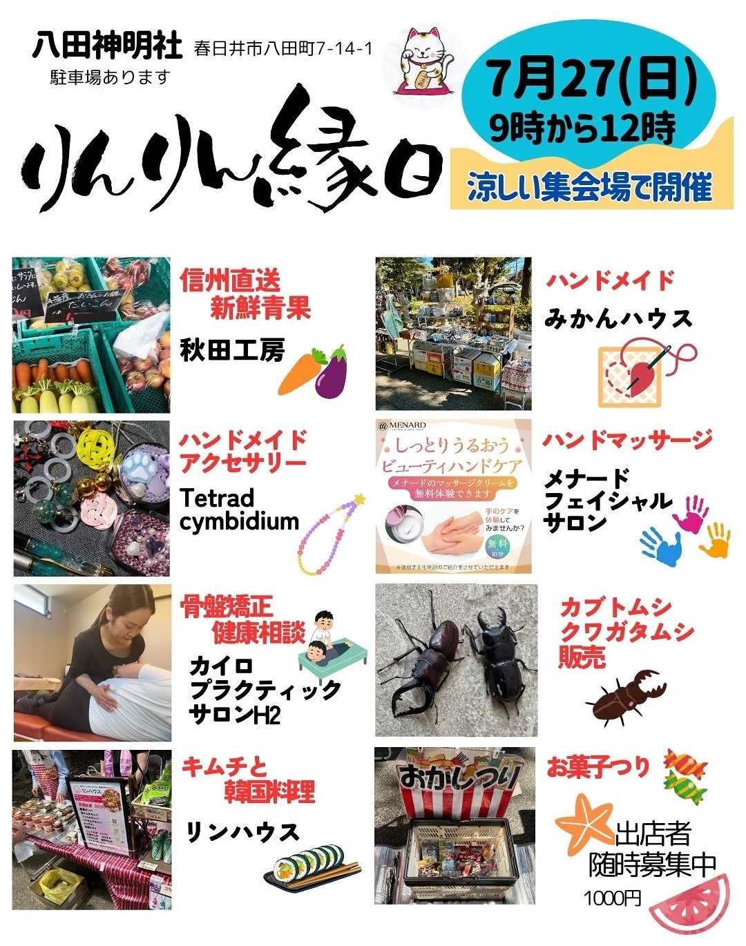 7/27(日)に春日井市八田町の八田神明社で『りんりん縁日』が開催されます。