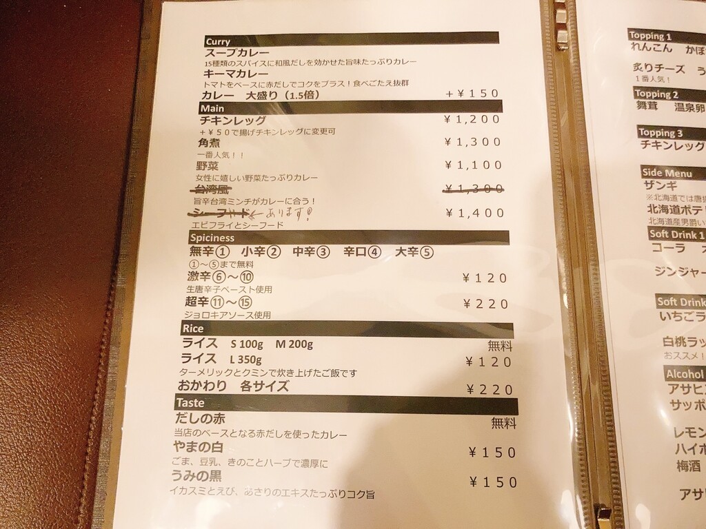 まず、スープカレーかキーマカレーかどちらかを選び、その後にメインを選ぶというスタイル。