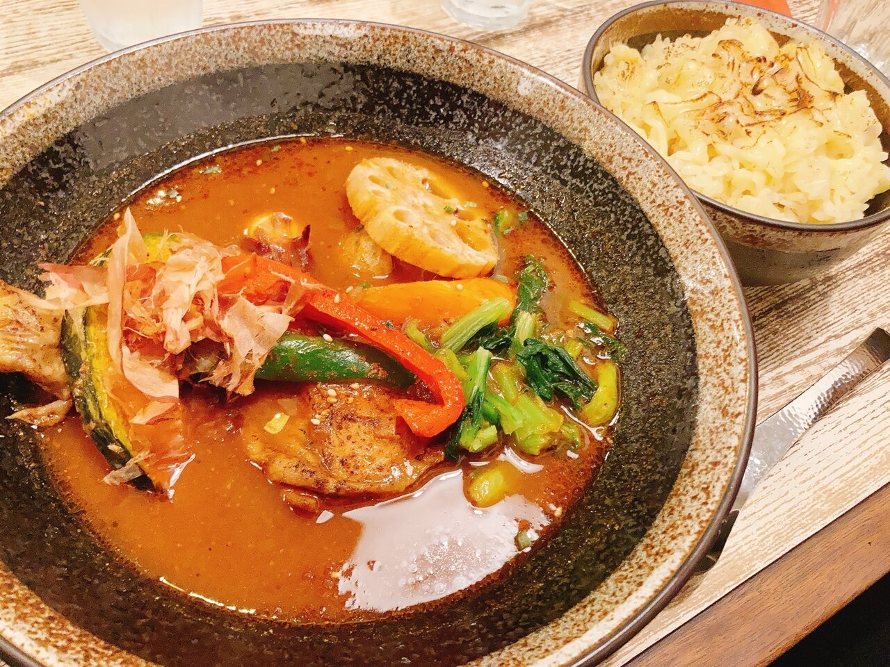 少し固めに炊いてあり、スープカレーによく合います。炙りチーズとスパイスの香りが最高です。