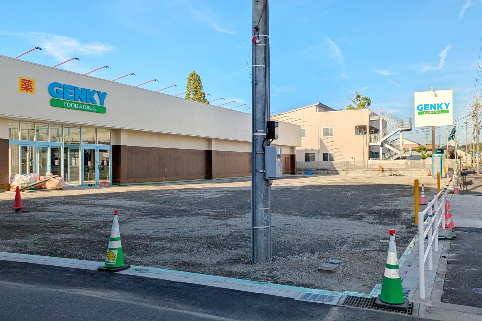 あまり広い印象はない土地だったので、ここにドラッグストアいけるのか...?と思っていましたが、いざ建物ができるとうまく収まっていますね。