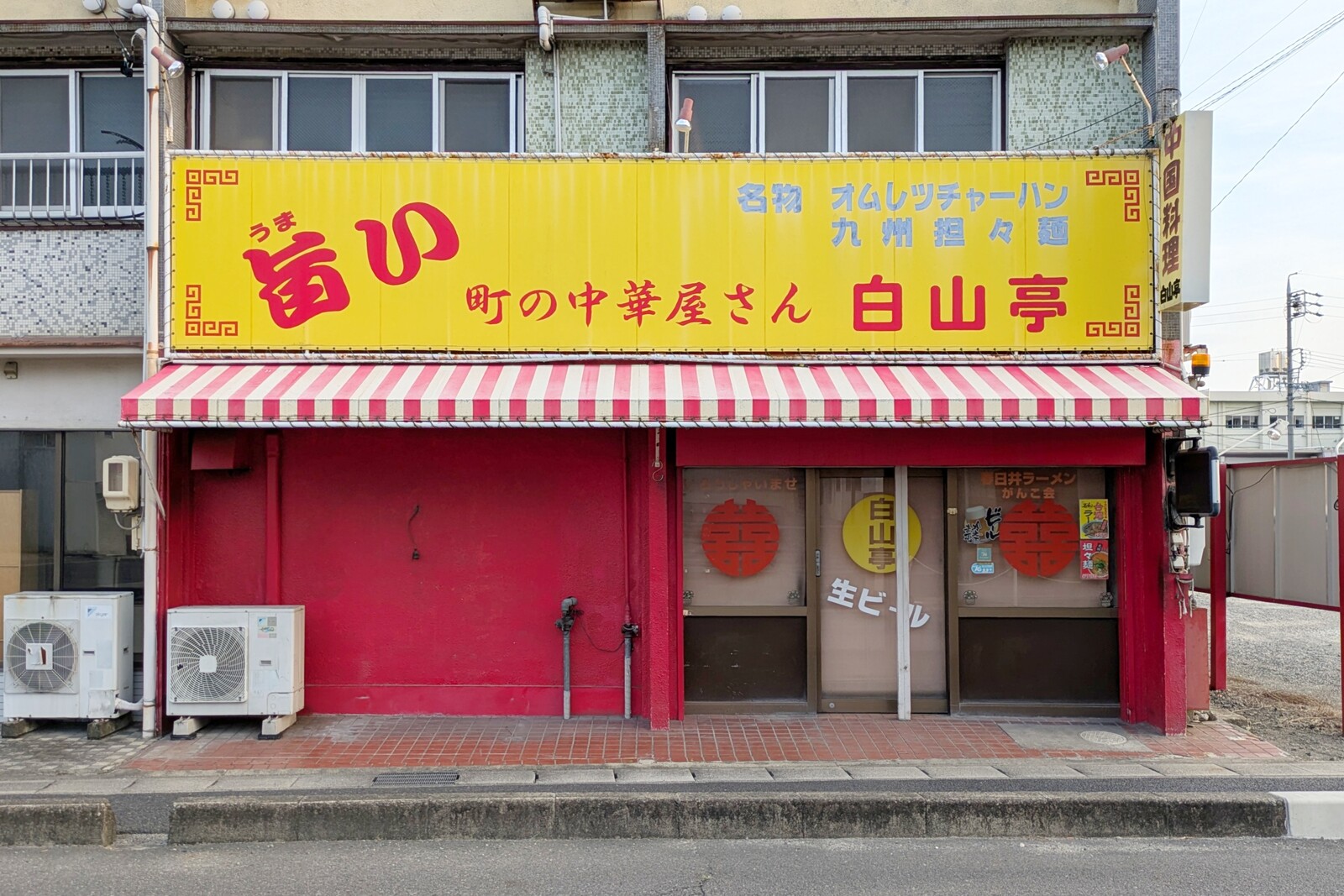 赤と黄色の派手な外観。年配の夫婦で運営していたお店。