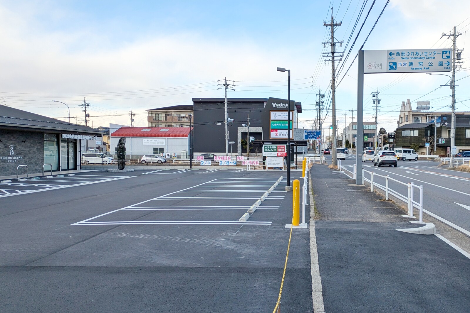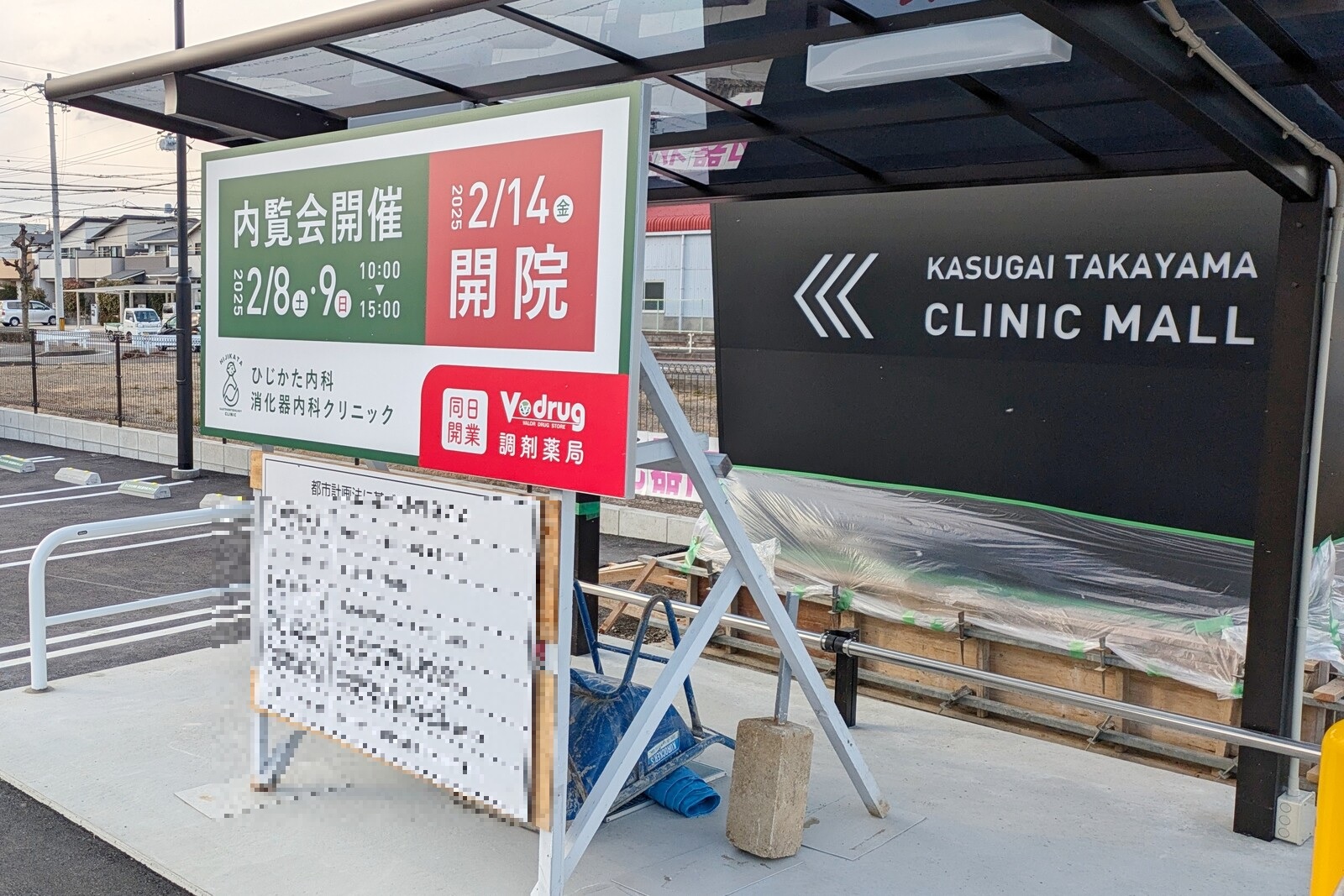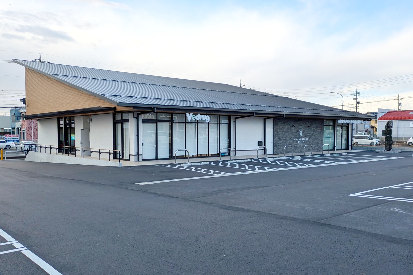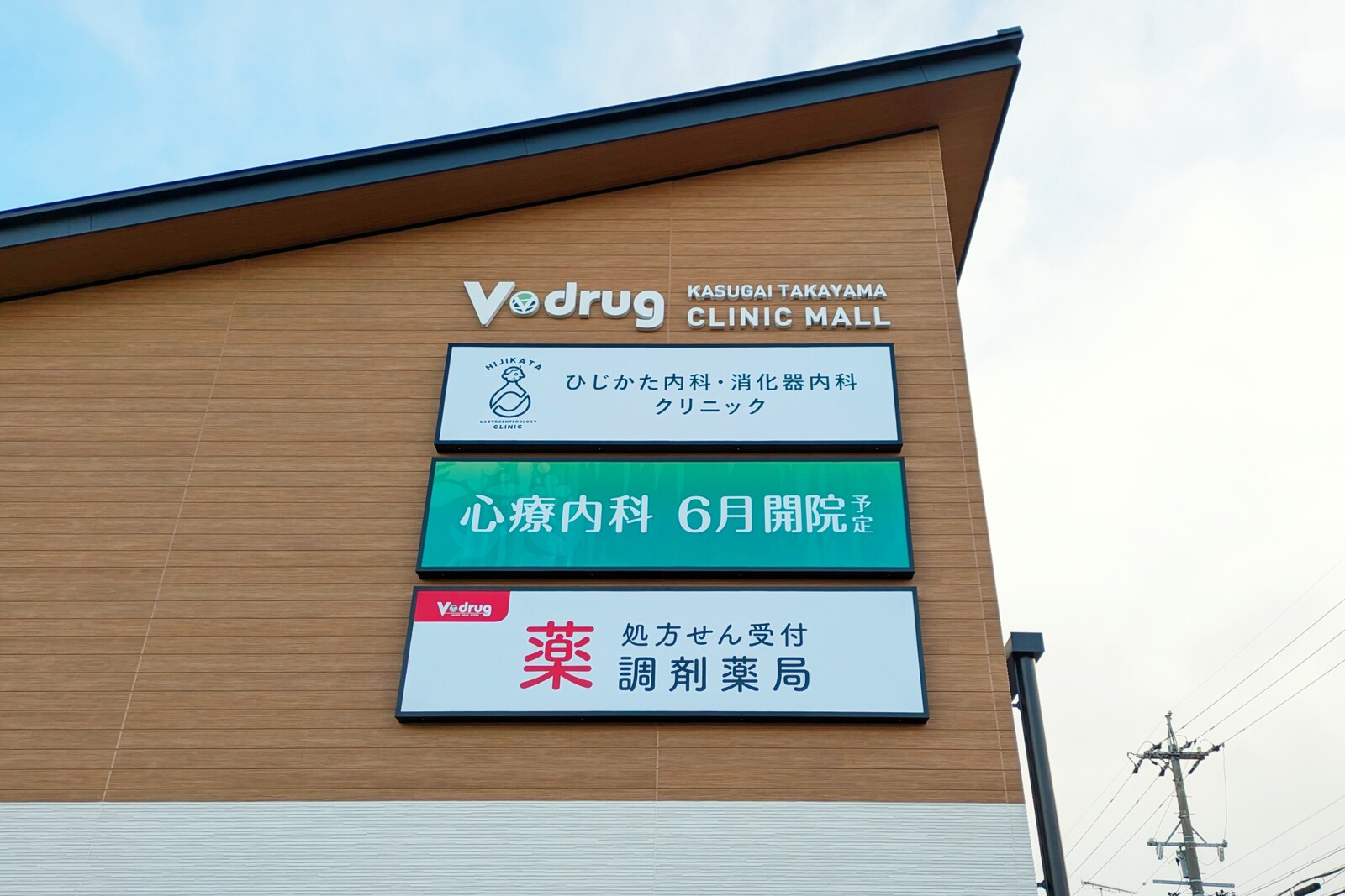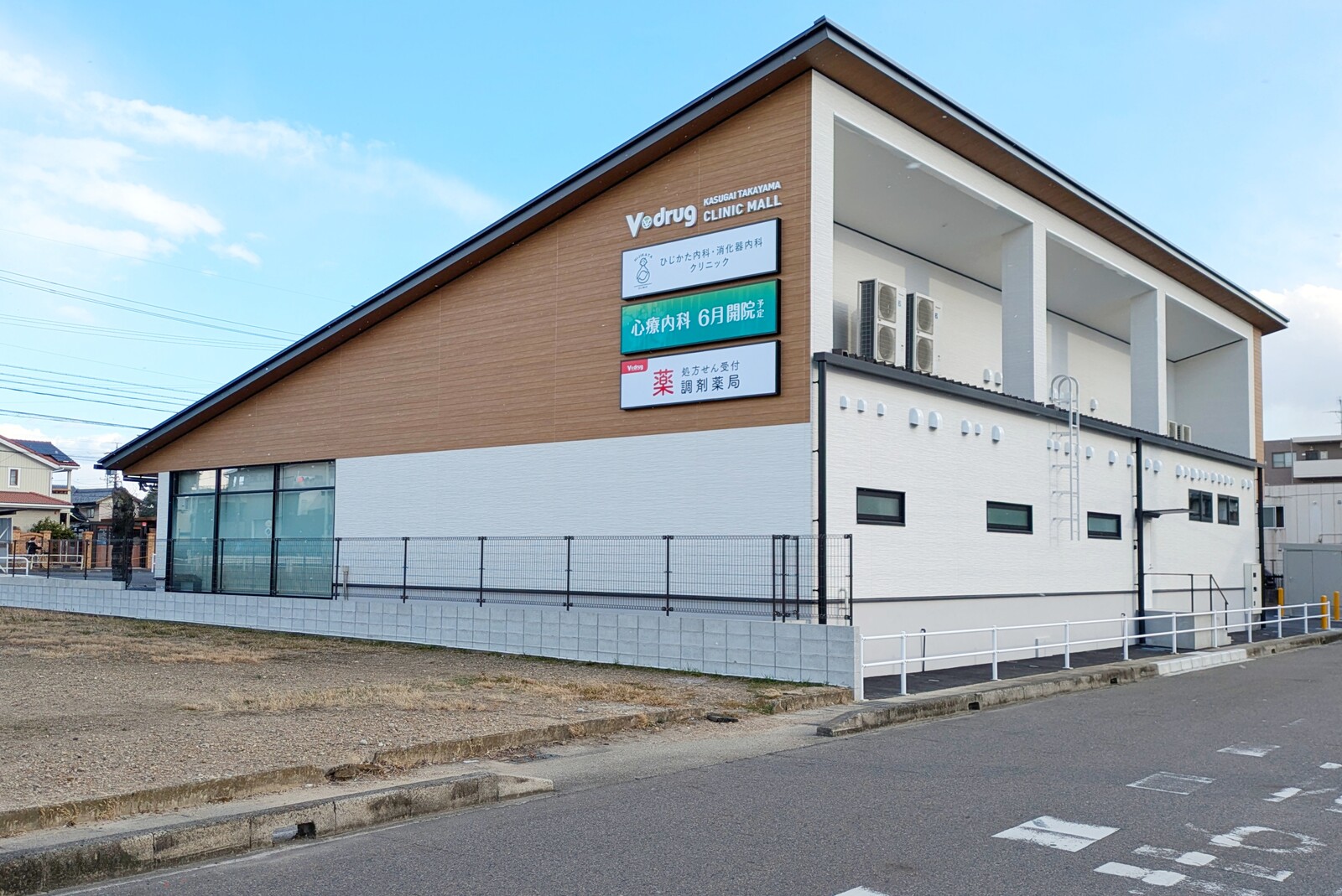 ここは「KASUGAI TAKAYAMA CLINIC MALL」という名前が付いており、ひじかた内科・消化器内科クリニックの他にVドラッグの調剤薬局があります