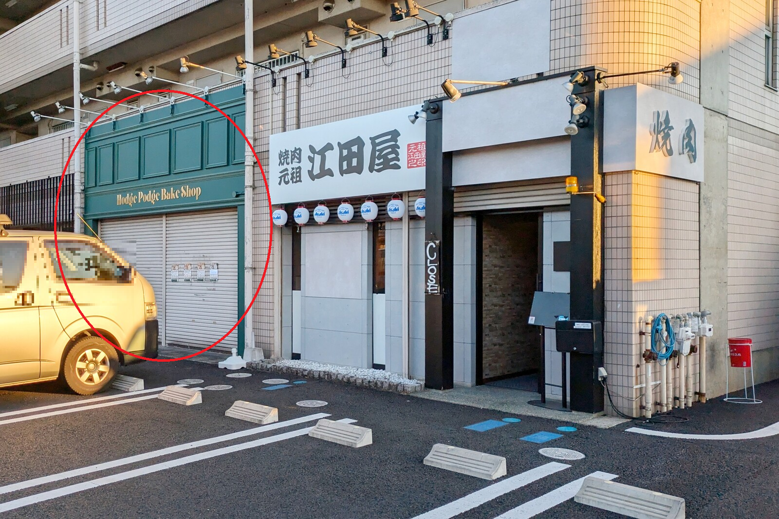 赤丸で囲った所がホッジポッジベイクショップ。3つのお店が並ぶ真ん中です。