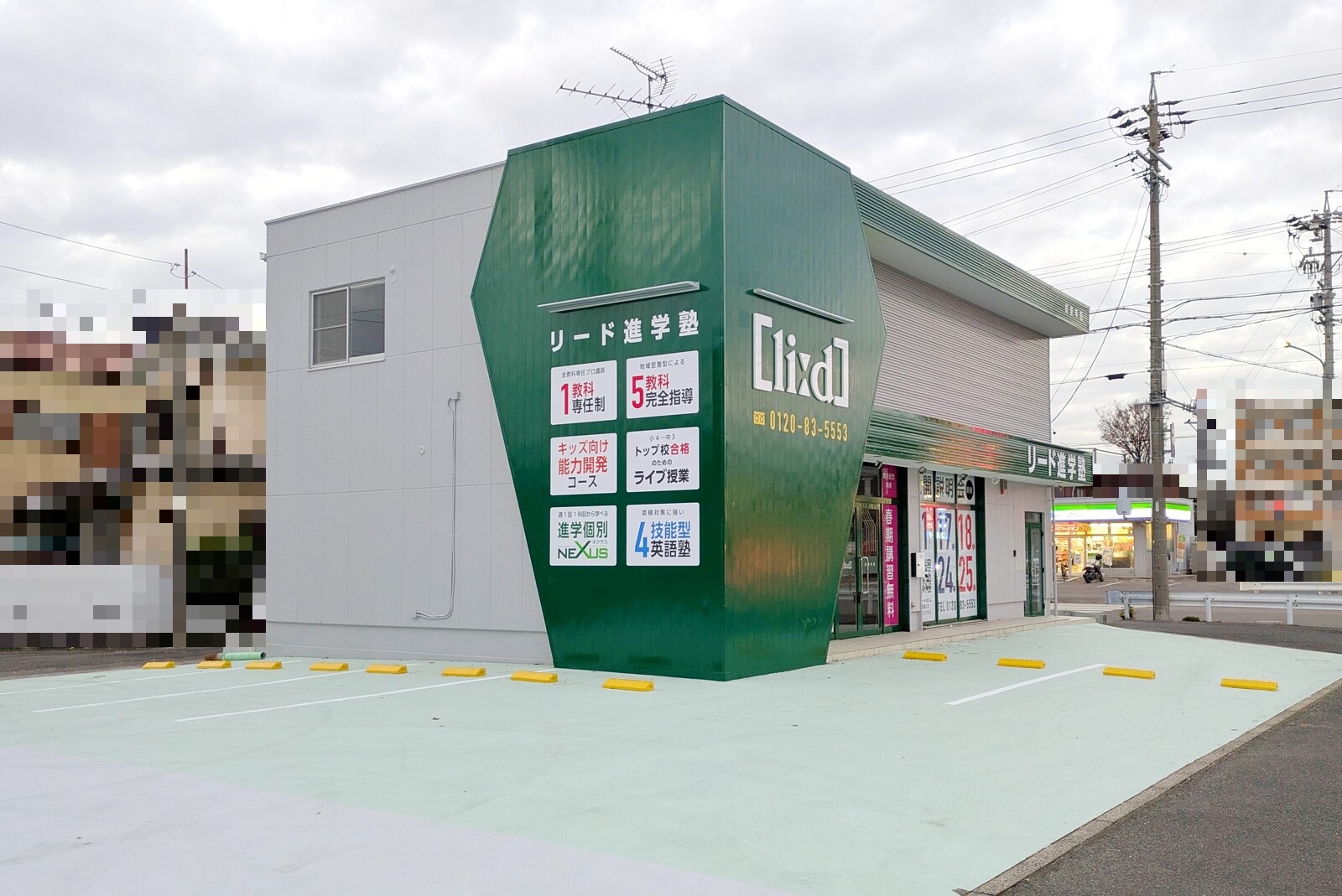 岐阜発祥のリード進学塾。緑色がイメージカラーで、最近ちょいちょい見る気がします。