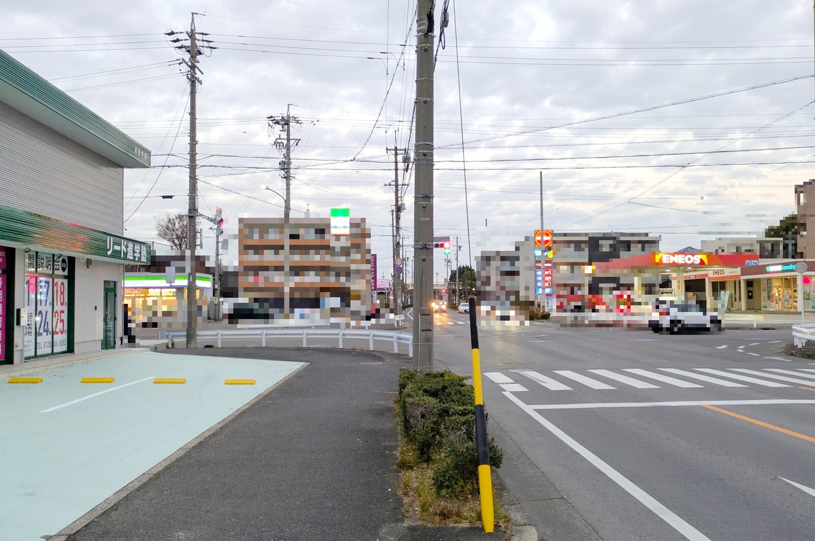 こちらの左側が校舎。ファミリマートやエネオスがある松山小学校南交差点の所。
