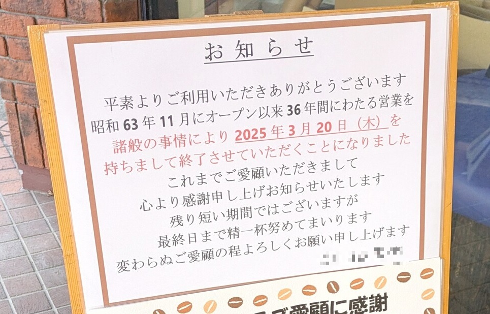 36年間の営業に幕