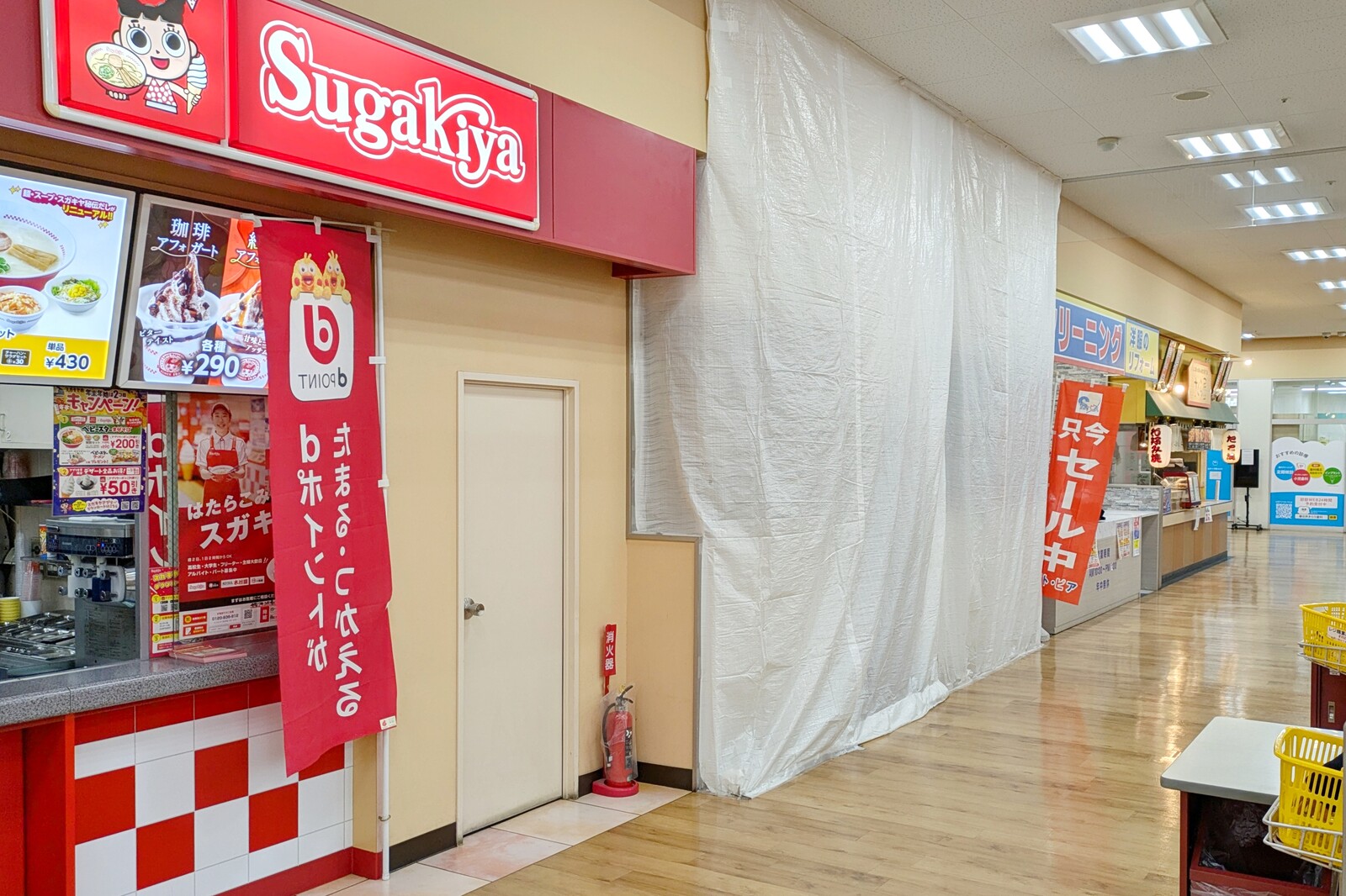 スガキヤとクリーニング店の間で、白幕で覆われていました。