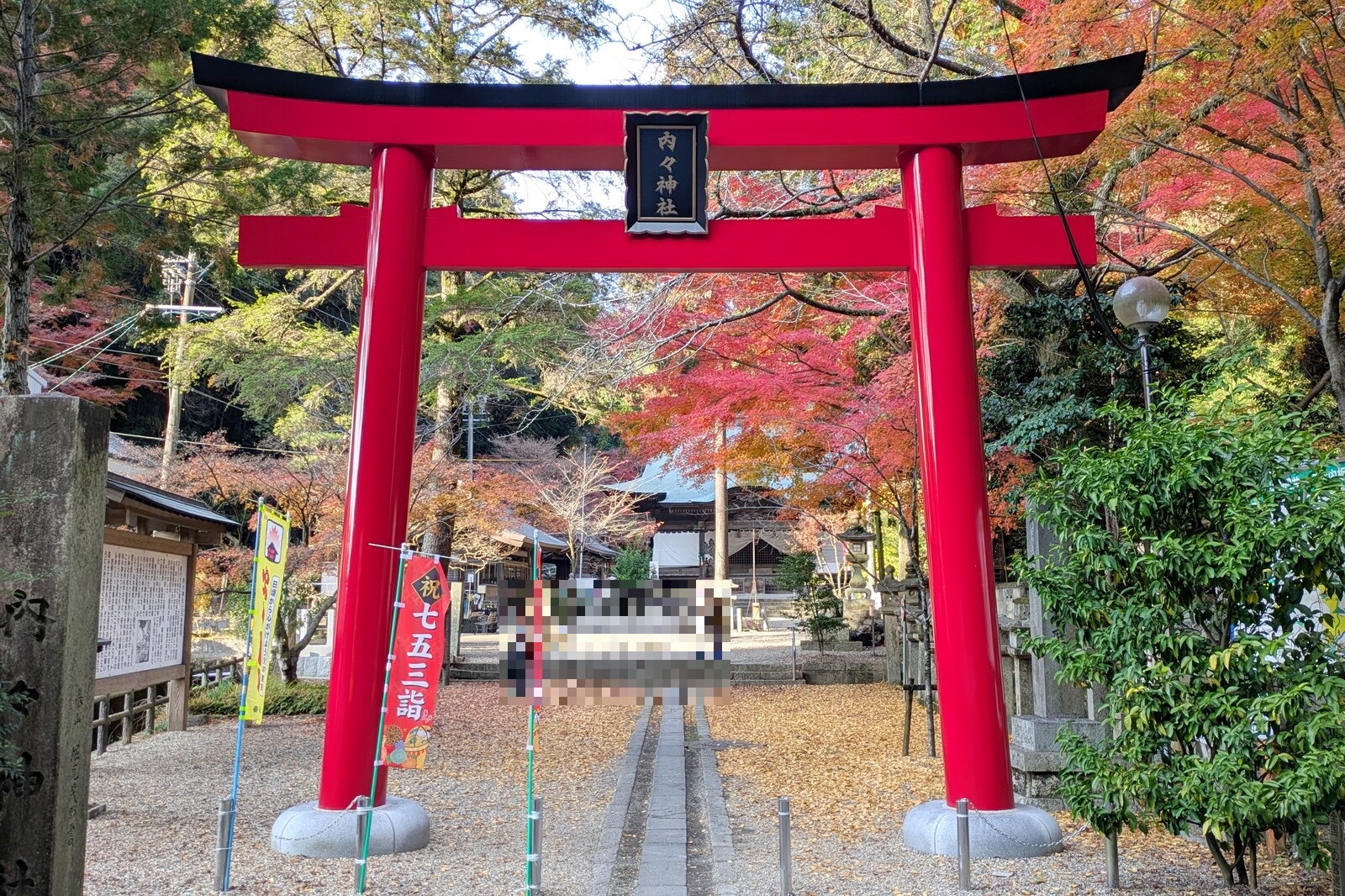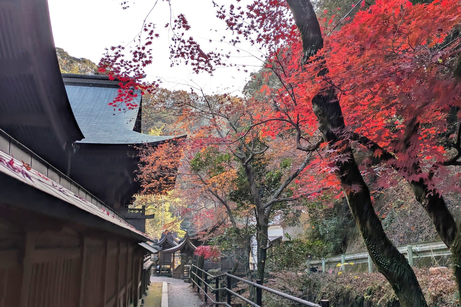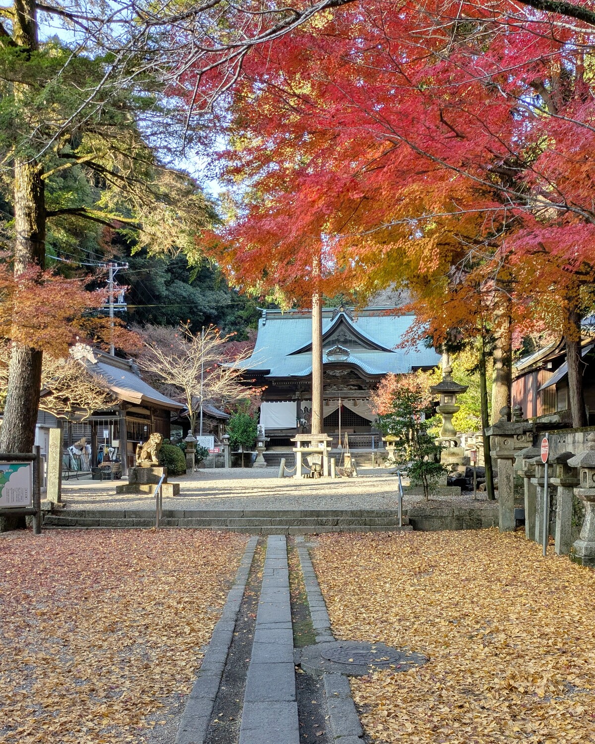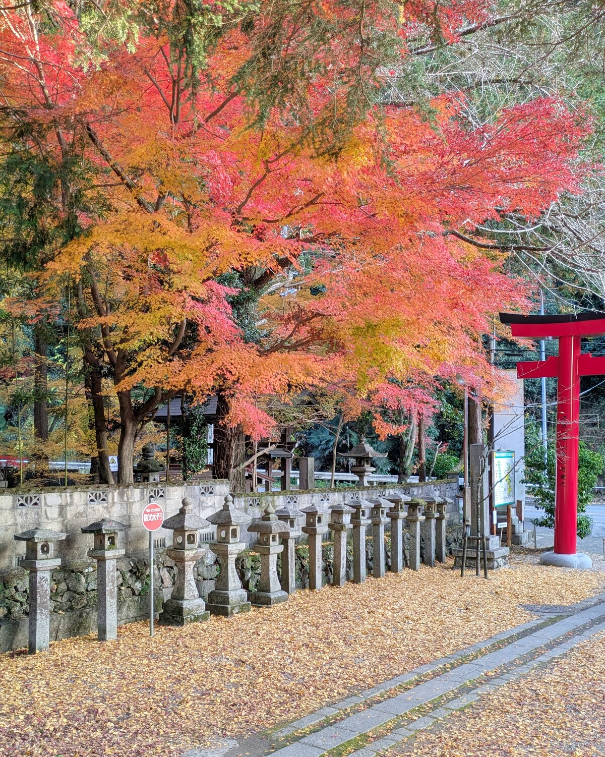 今回はベストタイミング。塗装し直された鳥居の背景に紅葉が映えています。