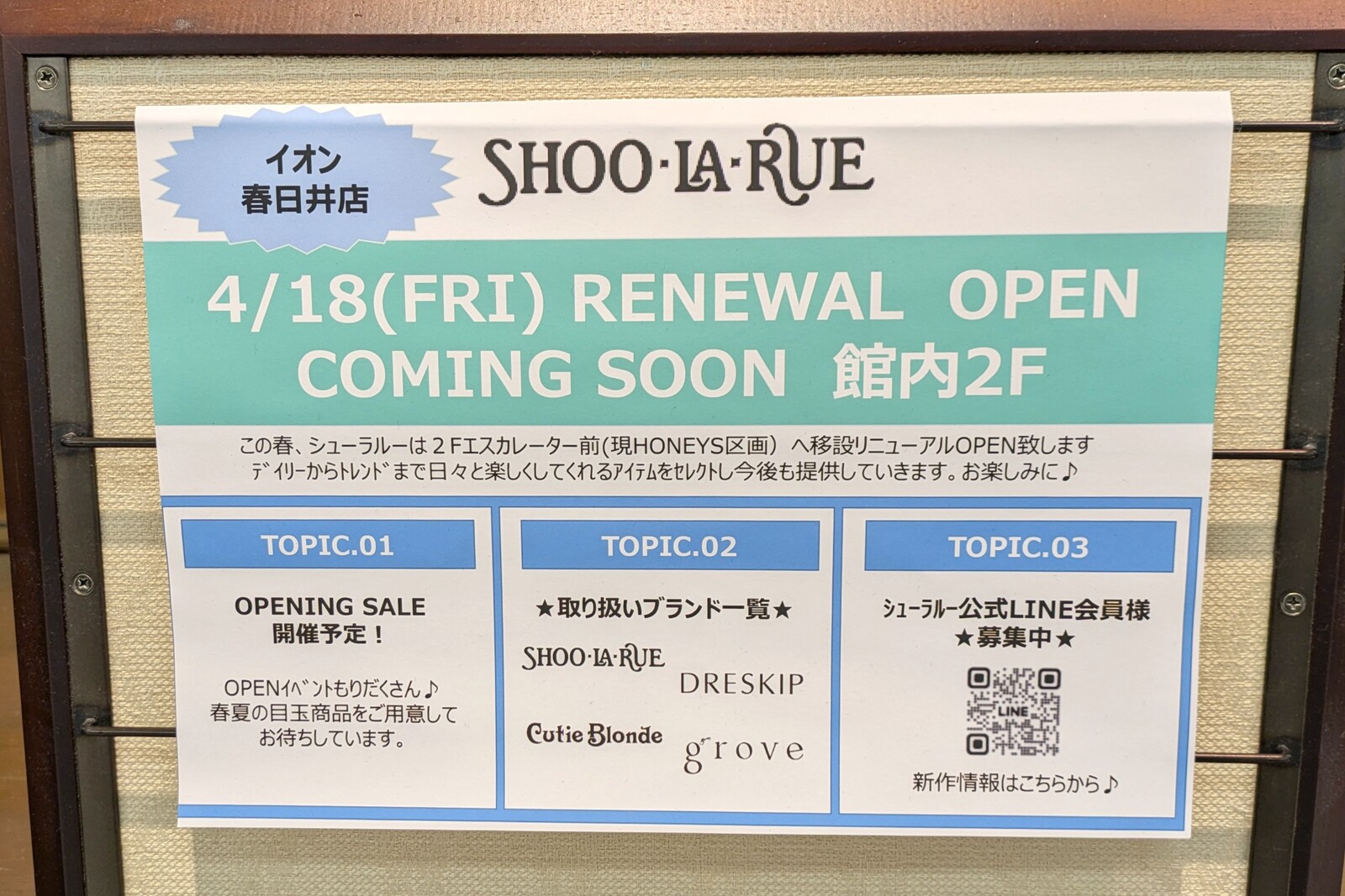 おそらく、新たにイオン春日井店に入る予定となっているお店があり、それに伴う複数の移転・リニューアルかなと。