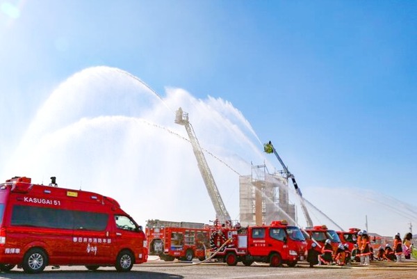 1/10(土)は消防出初式。サンフロッグ春日井東側駐車場にて(春日井市南下原町)