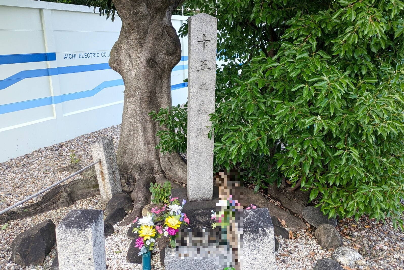会社の敷地内(駐車場部分)に「十五の森」という市指定の史跡があります。