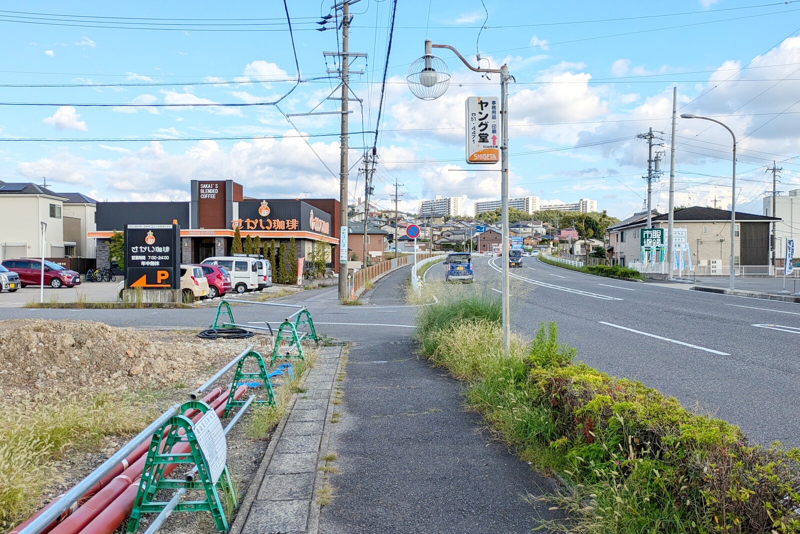 写真左側が現地。県道199号線(高蔵寺小牧線)沿いで、さかい珈琲の隣。