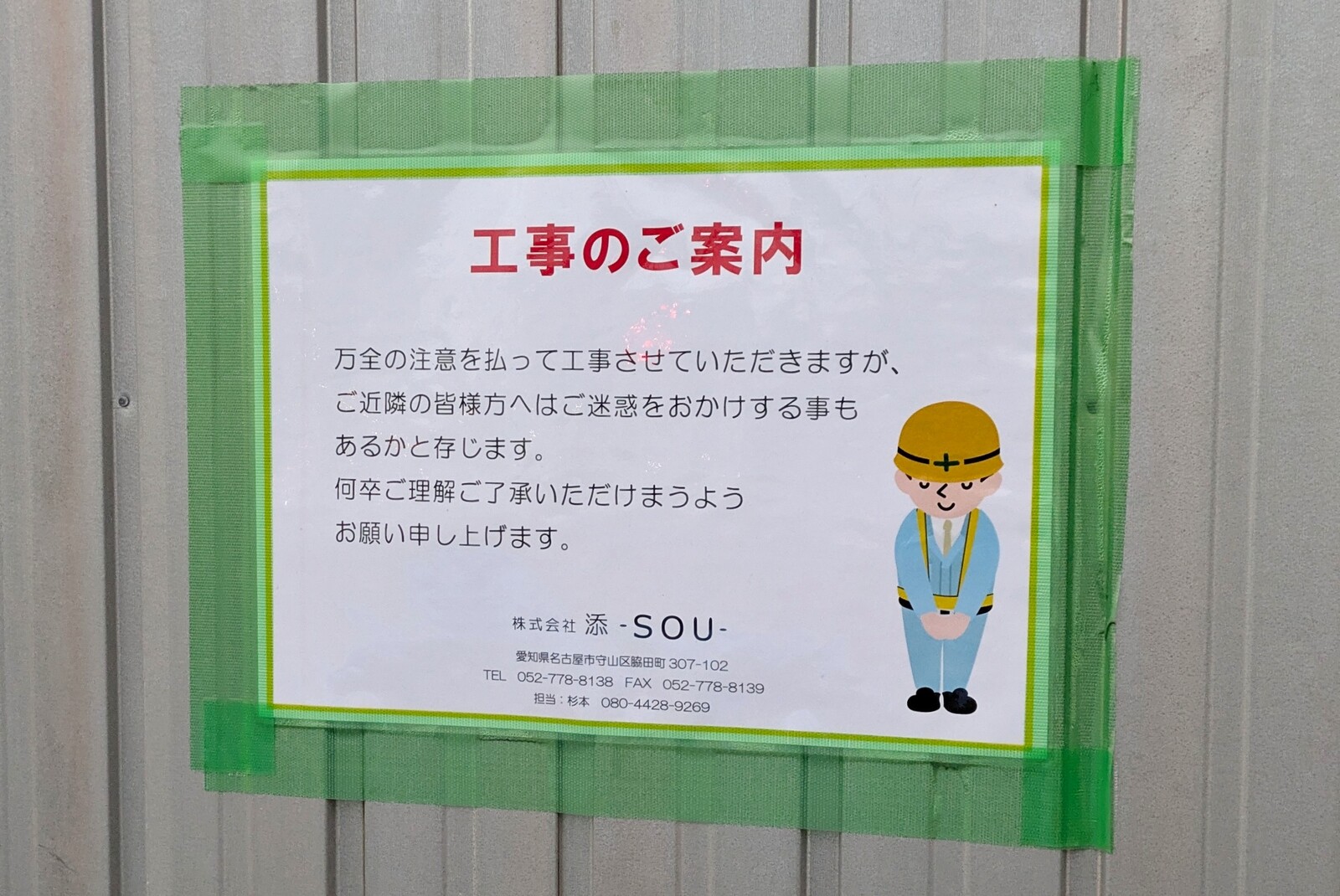 工事をしている会社は、名古屋の店舗デザイン系の会社。ということで、何かしらのお店の開店準備?